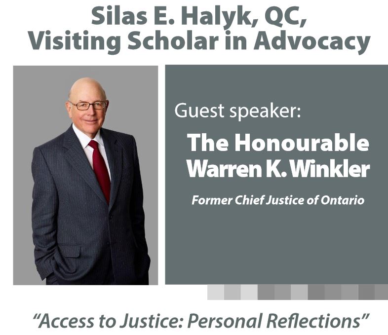 The Honourable Warren K. Winkler, O.Ont., Q.C., B.A., LL.B, LL.M., LL.D. (Hon.), the former Chief Justice of Ontario, is recognized as one of Canada’s leading mediators. He recently gave a speech at the University of Saskatchewan College of Law on several key A2J issues. The speech was entitled, “”Access to Justice: Personal Reflections” and can be viewed online here: http://bit.ly/SilasHalyk-WWinkler and is available in pdf format here: http://bit.ly/A2J-PersonalReflections-WWinkler