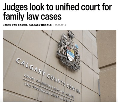 In a recent meeting with the editorial board of the Edmonton Journal, Premier Dave Hancock expressed his enthusiasm for a unified family court. Quoting from an article published in the Calgary Herald in 27 May 2014